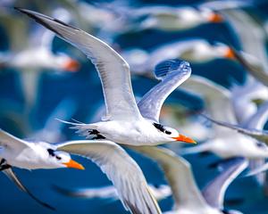 I photographed this flock (a highness) of royal terns off the coast of Marco Island, Florida, and it's one of my favorite bird in flight shots that I've taken to date.