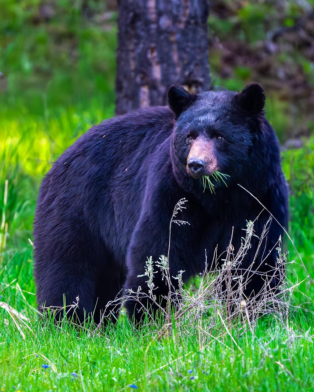 This Black Bear wasn't happy about another photographer (out of frame) getting close to him, and caused him to look up from his dinner.