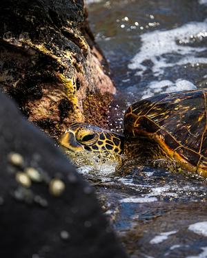 The strong waves washed this feeding Green Sea Turtle up close to shore, making for a good photo.