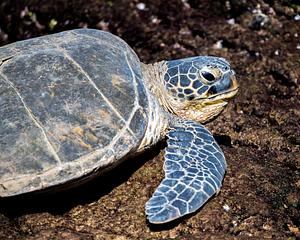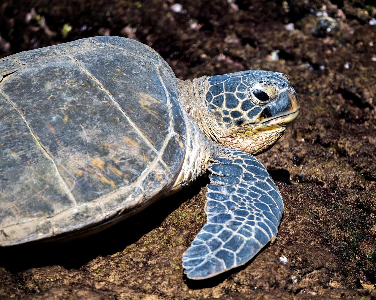 I photographed this Green Sea Turtle relaxing on a rock in Hawaii.